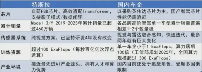特斯拉与国内车企差距 信息来源:辉羲智能